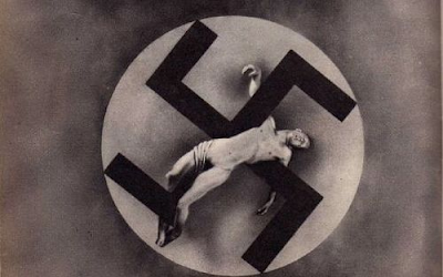 Cuando Jon Heartfield decidió unirse al grupo Dada, lo hizo también en las filas del Partido Comunista Alemán. Ambas uniones no pudieron evitar ser simultáneas. El Dadaismo, como muchos ya sabréis, fue un movimiento artístico que pretendió romper en todo tipo de burlas al sistema capitalista que envió a millones de personas en la gran carnicería de la I Guerra Mundial, una de las más absurdas farsas disfrazadas de aventura patriótica habidas en la Historia. Heartfield usó como nadie el fotomontaje para transmitir un mensaje político, en la mayoría de los casos contra el nazismo que se estaba extendiendo cual gangrena mortal por la sociedad alemana.